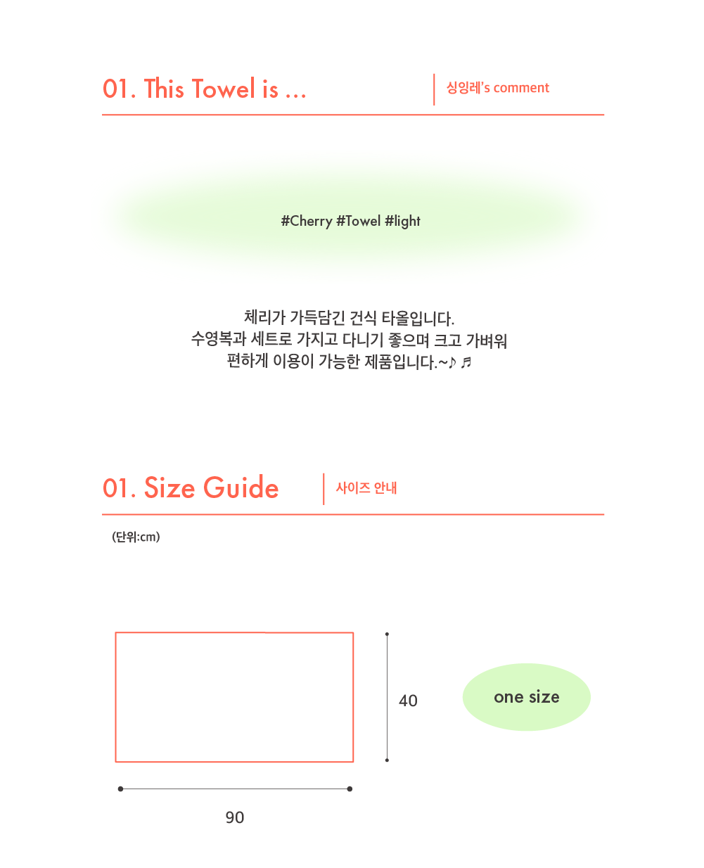 크고 가벼워 운동후 사용하기 좋은 건식타올입니다.